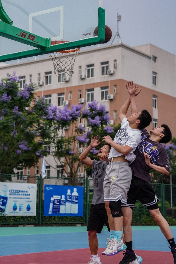 在5月18日上午,篮球比赛在同学们的期待中如期举行。在篮球赛场上,同学们展现了顶尖的球技和团队合作精神,每场比赛都激烈而精彩。球场上的火热比拼吸引了众多观众的目光,现场气氛热烈,掌声不断。各支参赛队伍展现出了顽强拼搏的精神,展现了团结合作的力量。篮球比赛分为1V1、3V3和趣味投篮三个项目,旨在满足不同篮球爱好者的需求。场上球员们你争我夺,配合默契,每一次突破、投篮和防守都引来了观众的阵阵掌声和欢呼。其中3V3比赛更是体现了本次体育节的“友谊第一,比赛第二”的活动宗旨。